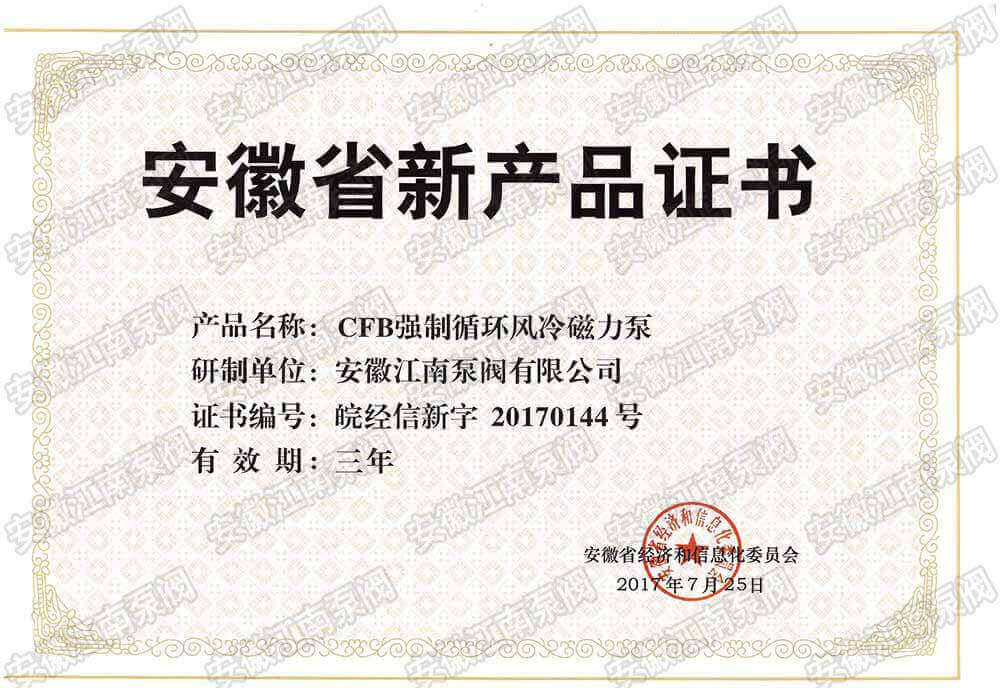 安徽江南泵閥有限公司榮獲CFB強(qiáng)制循環(huán)風(fēng)冷磁力泵新產(chǎn)品證書,主營:氟塑料泵,不銹鋼泵,耐腐蝕化工泵,品質(zhì)卓越,行業(yè)領(lǐng)跑企業(yè),科研生產(chǎn)型企業(yè)20年鑄就行業(yè)輝煌!...