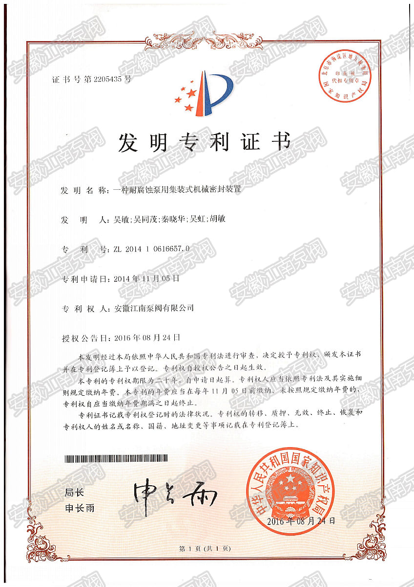 安徽江南泵閥有限公司榮獲耐腐蝕泵集裝機(jī)械密封專利,主營(yíng):氟塑料泵,不銹鋼泵,耐腐蝕化工泵,品質(zhì)卓越,行業(yè)領(lǐng)跑企業(yè),科研生產(chǎn)型企業(yè)20年鑄就行業(yè)輝煌!...