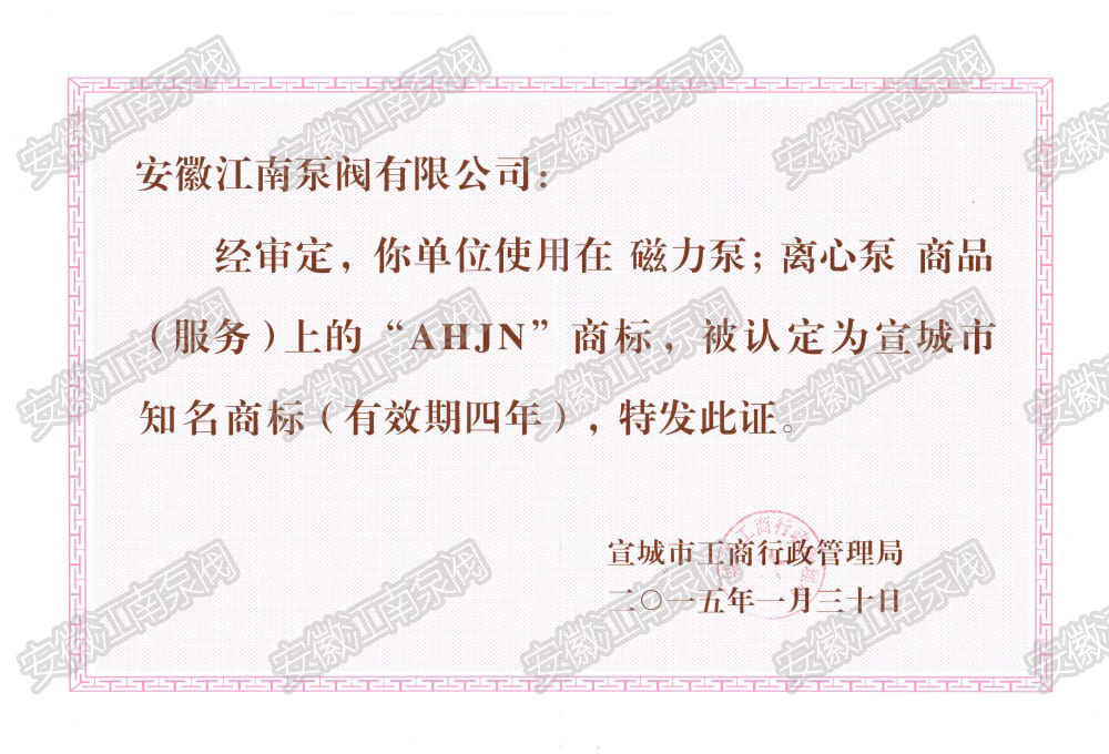 安徽江南泵閥有限公司榮獲磁力泵,離心泵宣城市知名商標(biāo),主營:氟塑料泵,不銹鋼泵,耐腐蝕化工泵,品質(zhì)卓越,行業(yè)領(lǐng)跑企業(yè),科研生產(chǎn)型企業(yè)20年鑄就行業(yè)輝煌!...